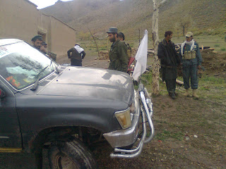 بیرق طالبان بر فراز موتر کوچیان غارت گر و سربازان دولتی نظارت گر صحنه